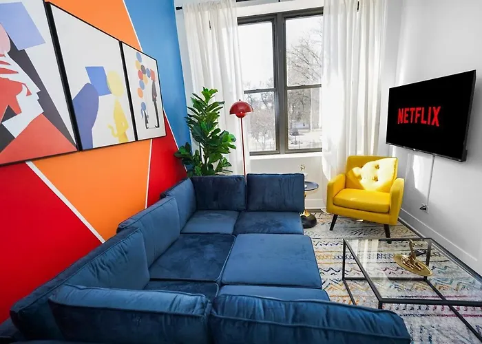 Pour les amateurs de sport, l'appartement bénéficie d'un emplacement idéal car il se trouve à 550 mètres de l'arène Wintrust et à 2 km du planétarium Adler et musée de l'Astronomie. Si vous souhaitez visiter les environs, rendez-vous à la Statue de Picasso, à moins de 3 km de la propriété. Cette propriété Appartement South Loop 2Br Chicago 420-Friendly Near Mccormick & Chinatown est située à 10 minutes en voiture de l'Aquarium John G. Shedd.